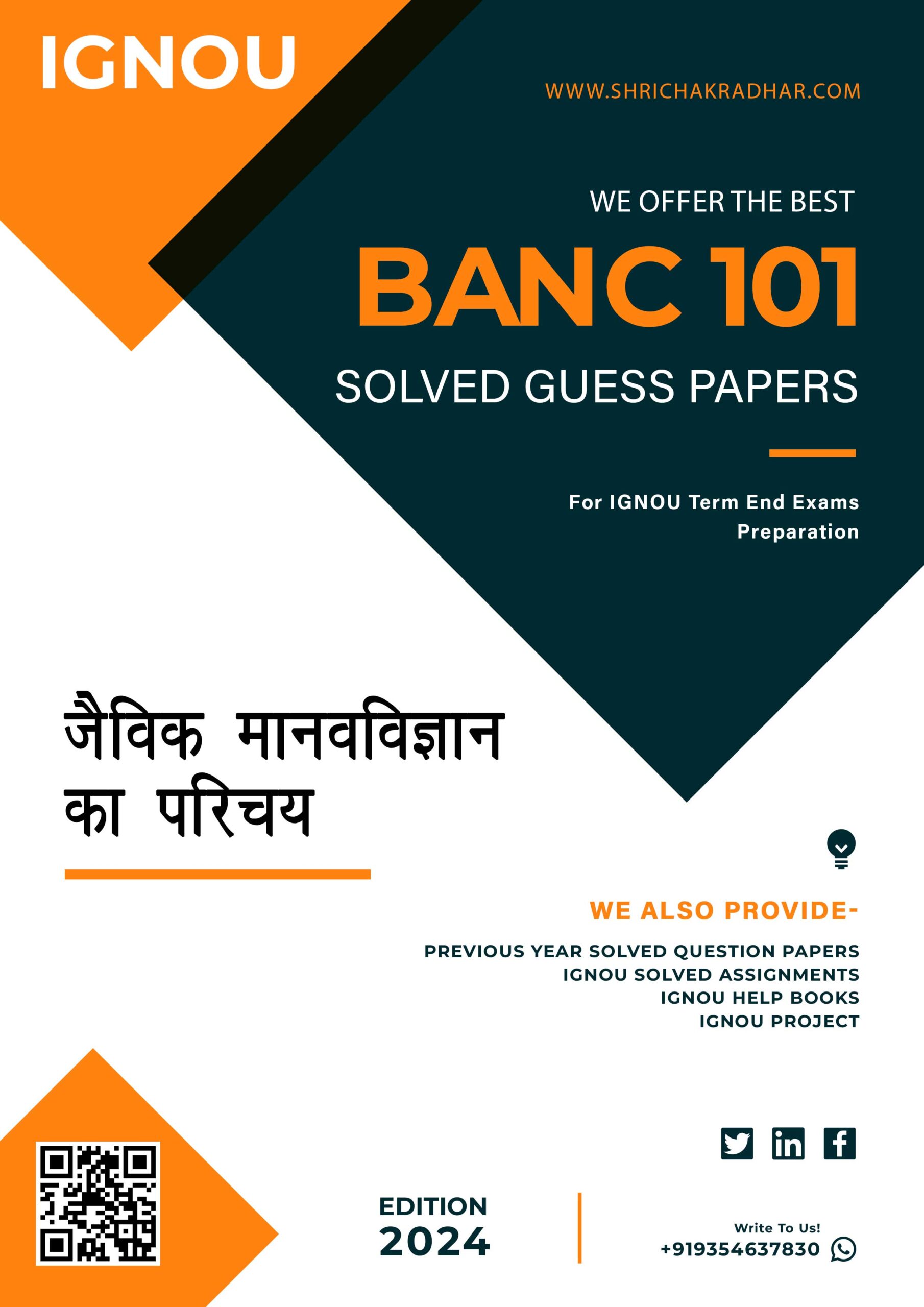 BANC 101? Bachelor of Science Anthropology Honours (BSCANH) ? IGNOU Solved Guess Papers