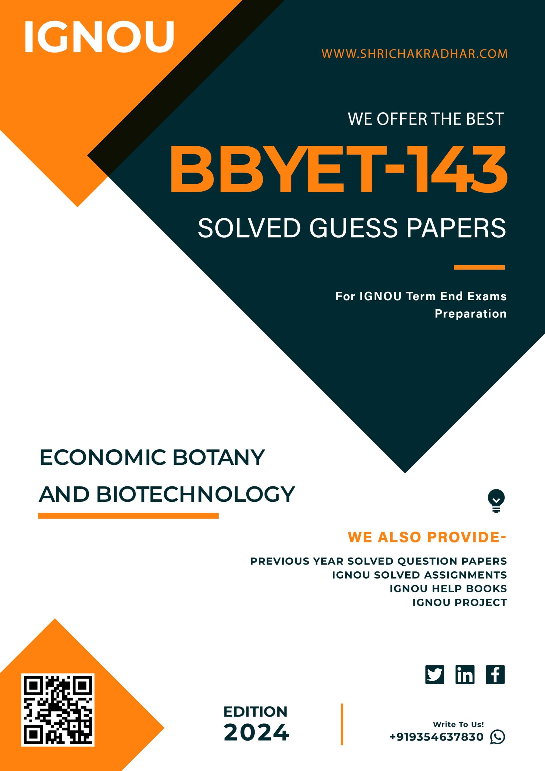 Delivery type: After successful payment, we will dispatch your selected years of BBYET 143 Solved Guess Papers in Hard-Copy in your postal address in a same day. In addition, if you have any query or need any support then please contact us on sales@shrichakradhar.com.