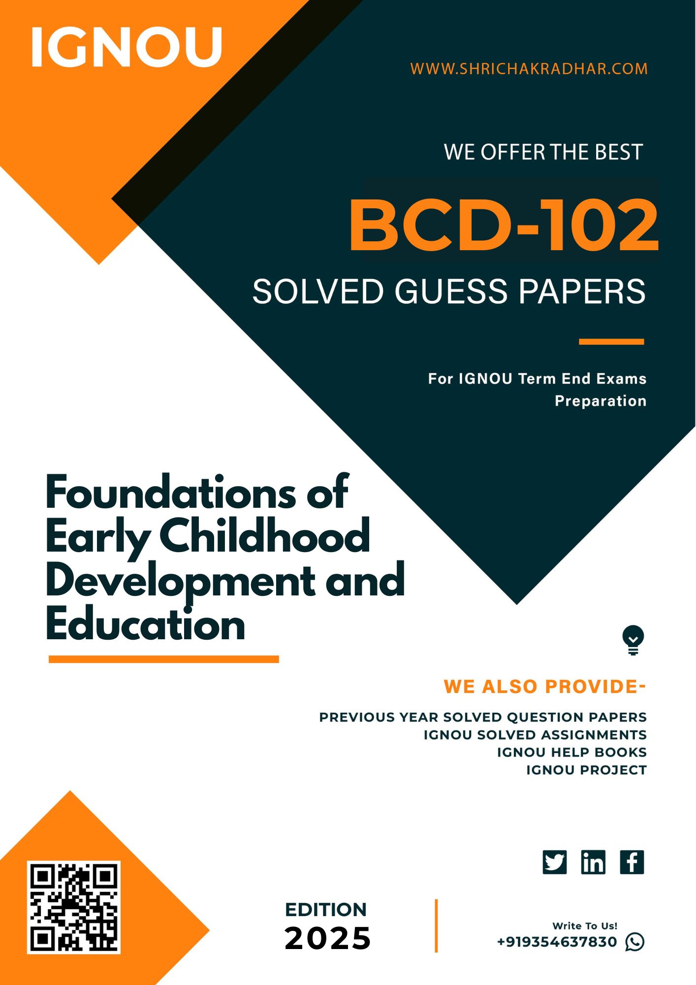 Delivery type: After successful payment, we will dispatch your selected years of BCD 102 Solved Guess Papers in Hard-Copy in your postal address in a same day. In addition, if you have any query or need any support then please contact us on sales@shrichakradhar.com.