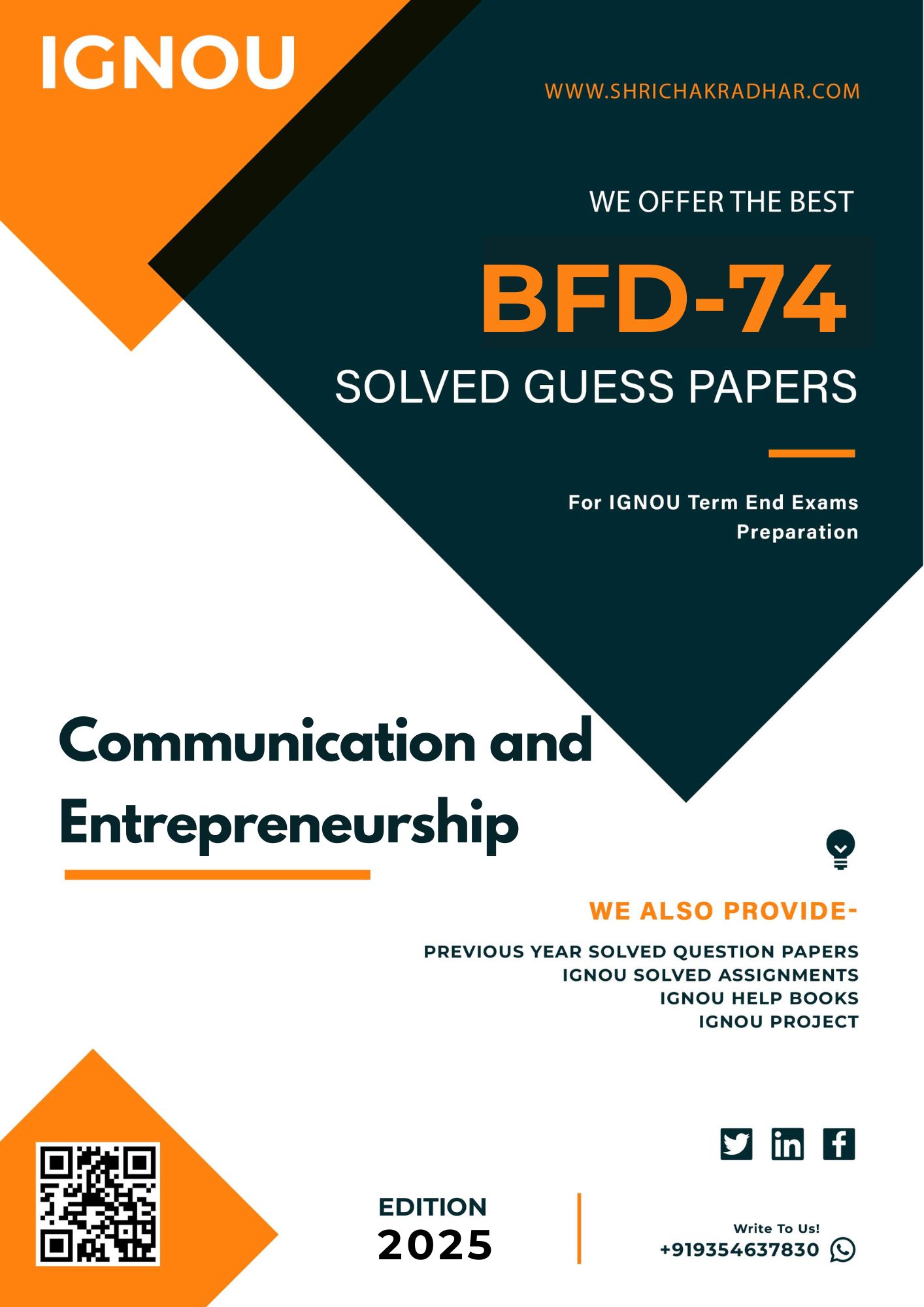 Do you need the most up-to-date IGNOU Solved Guess Papers in hard copy? We have posted IGNOU BFD 74 Guess Papers with totally solved answers for your convenience. For students who desire to pass their next IGNOU Term End Examination, here are the finest IGNOU BFD 74 Solved Guess Papers in a descriptive style. Because they offer answers to all of the questions on the IGNOU BFD 74 question paper, these IGNOU Solved Guess Papers solutions save student’s time. The answers are sufficiently given, and the terminology is straightforward to understand. Above all, get the best preparation for your upcoming exam by buying this IGNOU BFD 74 Solved Guess Papers from our IGNOU Help Books/Study Material/Guide Books section.