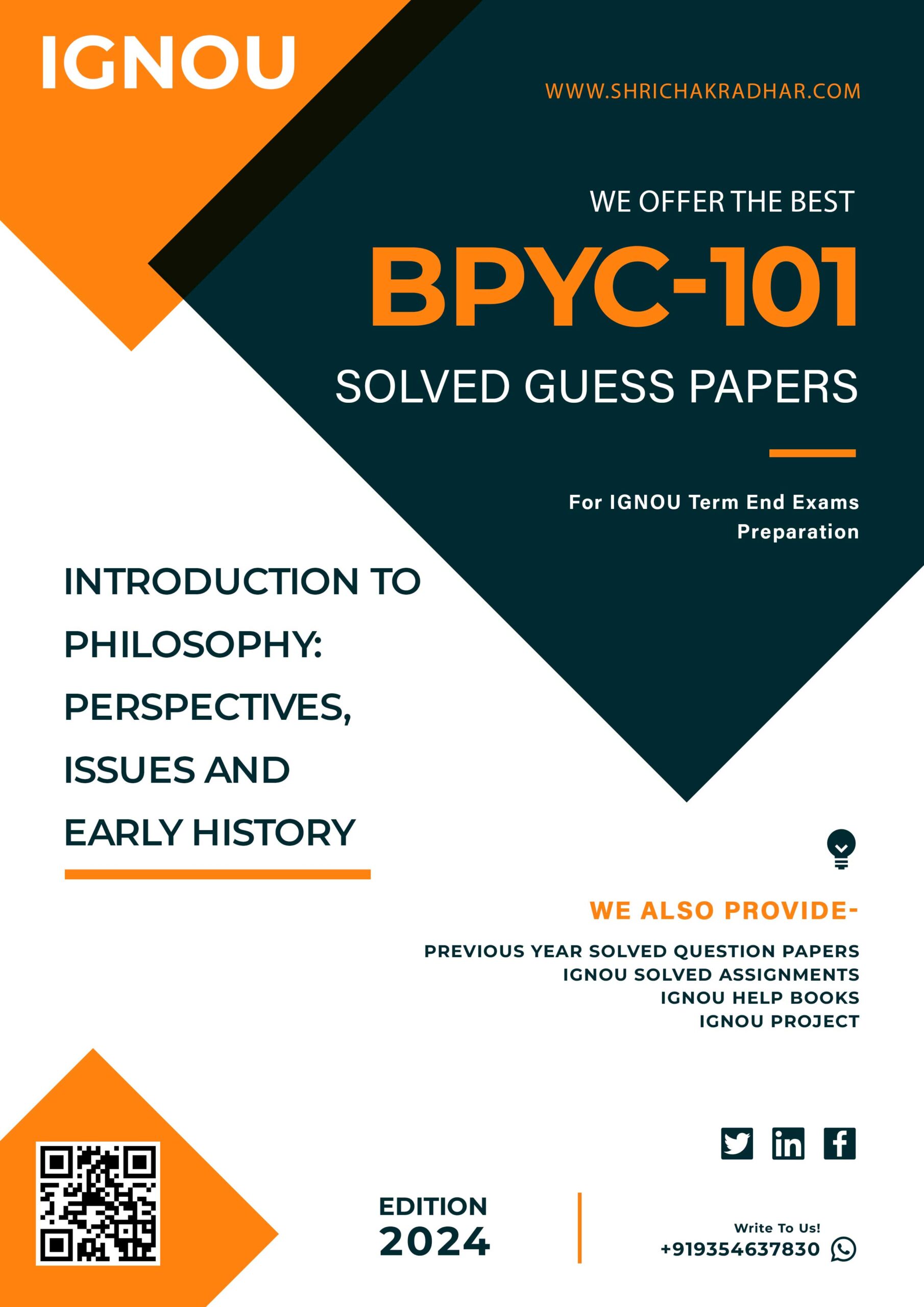 Do you need the most up-to-date IGNOU Solved Guess Papers in hard copy? We have posted IGNOU BPYC 101 Guess Papers with totally solved answers for your convenience. For students who desire to pass their next IGNOU Term End Examination, here are the finest IGNOU BPYC 101 Solved Guess Papers in a descriptive style. Because they offer answers to all of the questions on the IGNOU BPYC 101 question paper, these IGNOU Solved Guess Papers solutions save students time. The answers are sufficiently given, and the terminology is straightforward to understand. Above all, get the best preparation for your upcoming exam by buying this IGNOU BPYC 101 Solved Guess Papers from our IGNOU Help Books/Study Material/Guide Books section.
